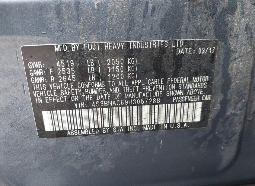 - VIN: 4S3BNAC69H3057288