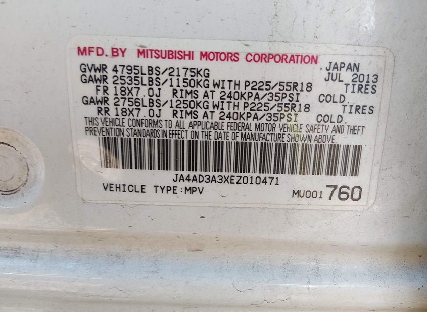 - VIN: JA4AD3A3XEZ010471