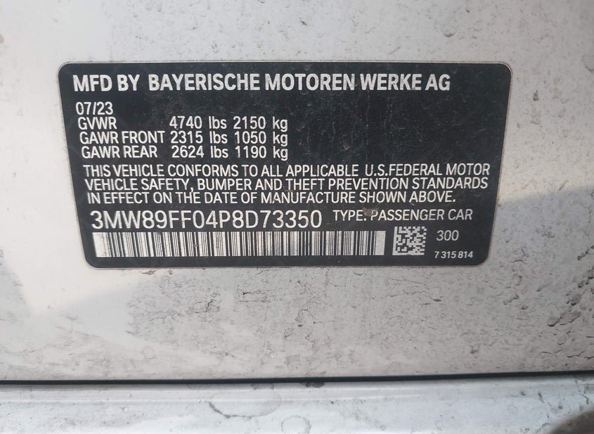 - VIN: 3MW89FF04P8D73350
