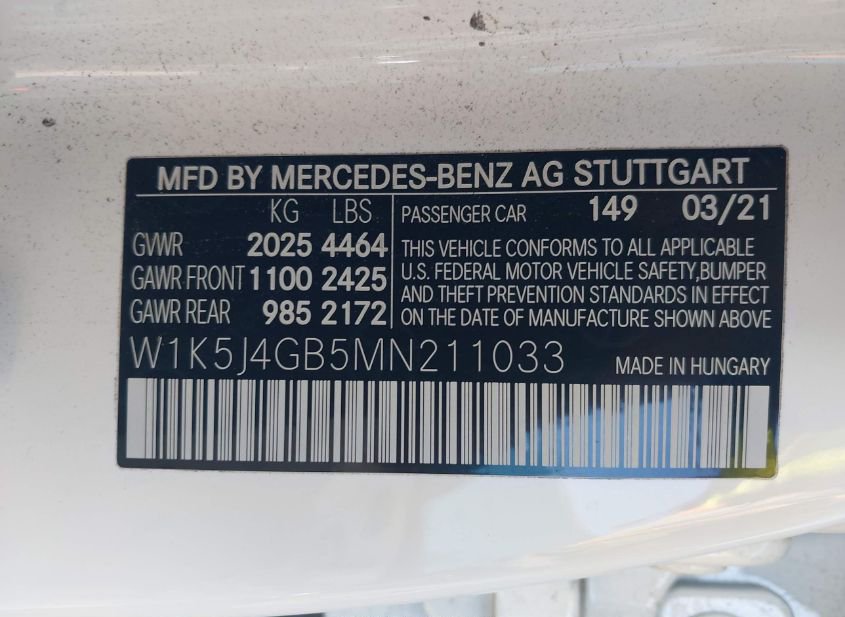 - VIN: W1K5J4GB5MN211033