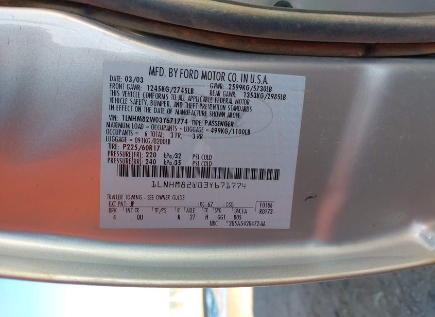 - VIN: 1LNHM82W03Y671774