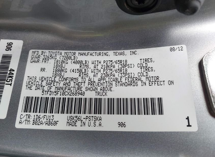 - VIN: 5TFDY5F10CX268940