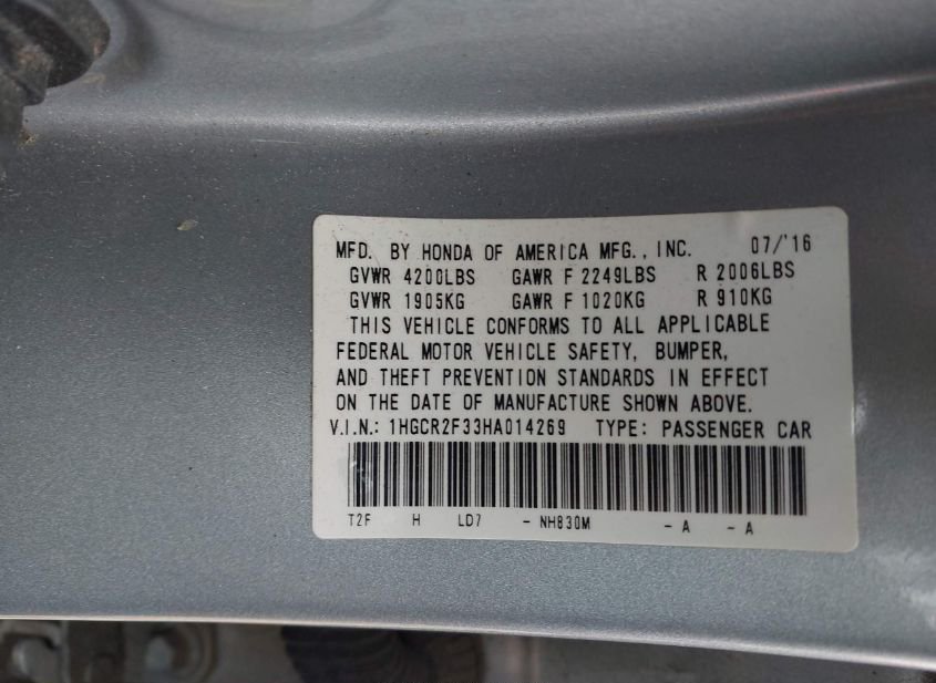 - VIN: 1HGCR2F33HA014269