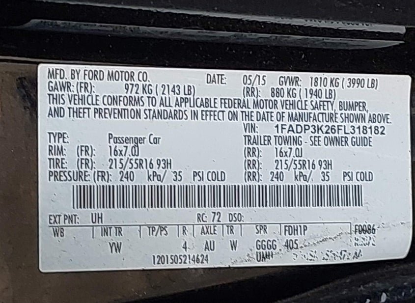 - VIN: 1FADP3K26FL318182