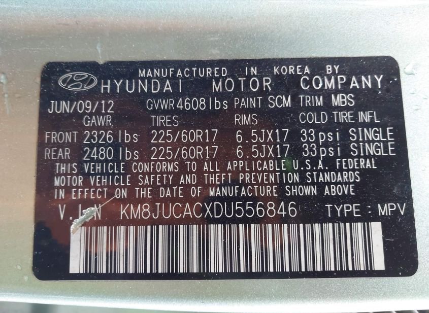 - VIN: KM8JUCACXDU556846