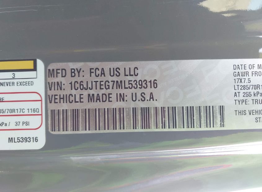 - VIN: 1C6JJTEG7ML539316