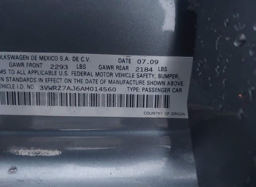- VIN: 3VWRZ7AJ6AM014560