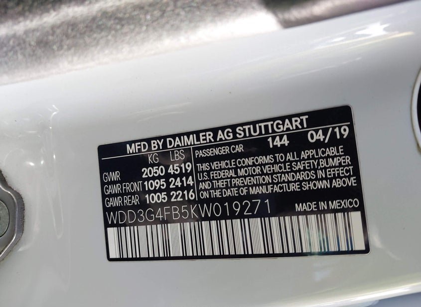 - VIN: WDD3G4FB5KW019271