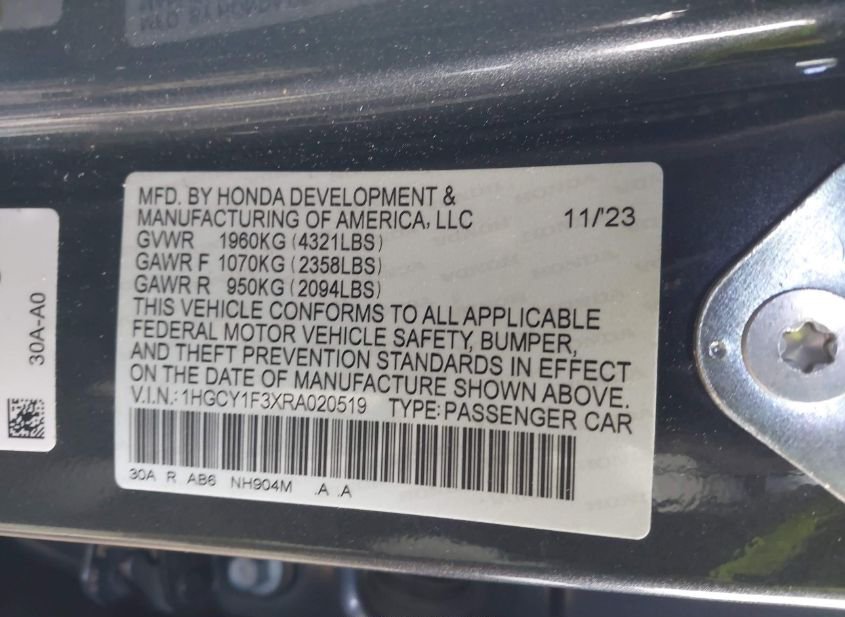 - VIN: 1HGCY1F3XRA020519