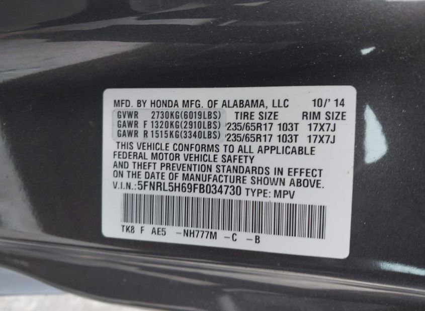 - VIN: 5FNRL5H69FB034730