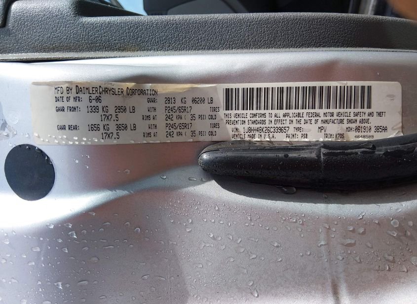 - VIN: 1J8HH48K26C339657
