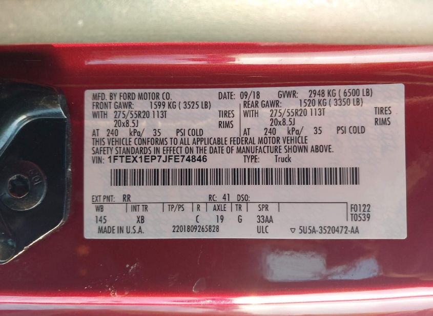- VIN: 1FTEX1EP7JFE74846