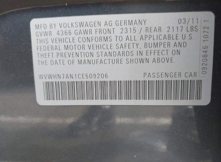 WVWHN7AN1CE509206
