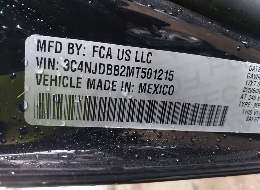 VIN: 3C4NJDBB2MT501215 · YORKTOWN, VA, 23693 · VA SALVAGE