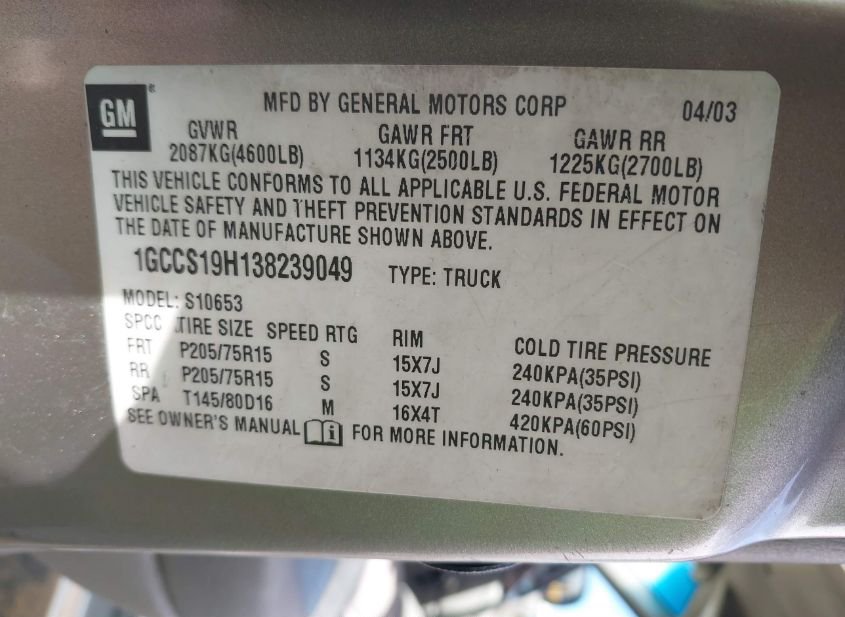 2003 Chevrolet S-10 2.2L