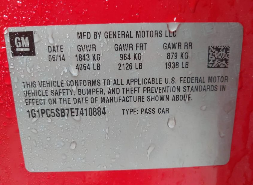 VIN: 1G1PC5SB7E7410884 · KANSAS CITY, KS, 66111 · TX NON-REPAIRABLE APPLIED WITH ODO OWNER ATTESTED TO.