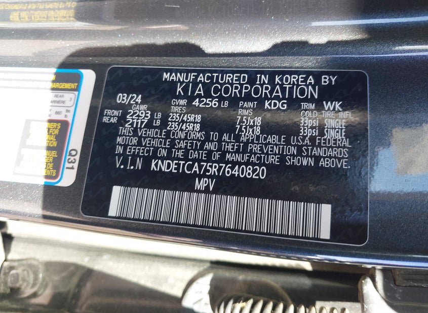 VIN: KNDETCA75R7640820 · BELL COUNTY, TX, 76527 · TX ORIGINAL