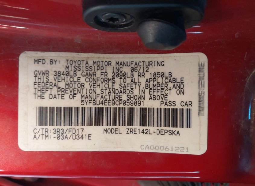 VIN: 5YFBU4EE9CP059891 · WEST CHESTER, OH, 45069 · OH SALVAGE