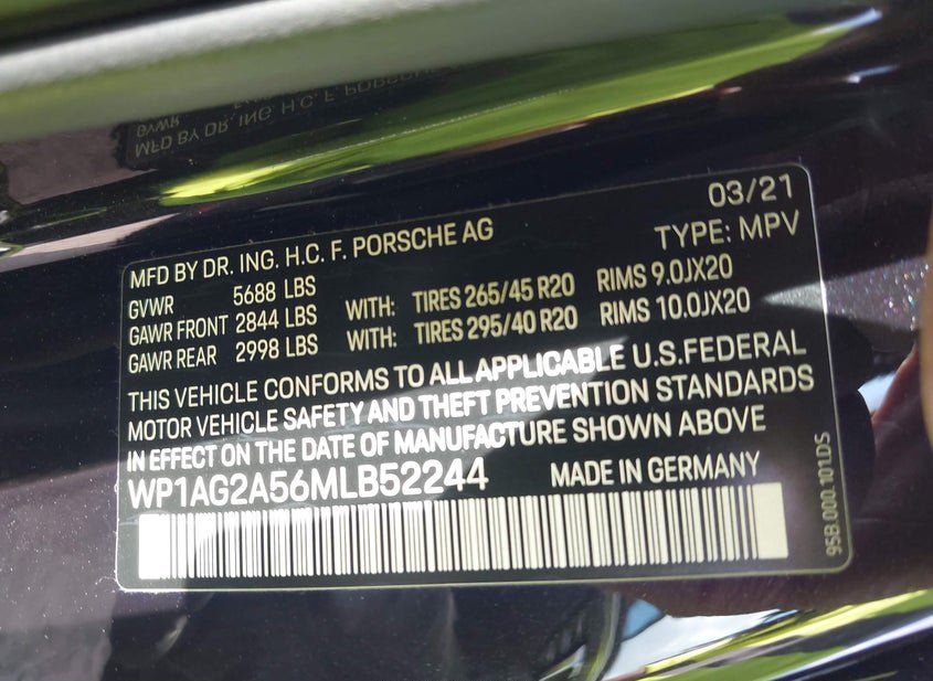 VIN: WP1AG2A56MLB52244 · HOUSTON, TX, 77032 · TX ORIGINAL
