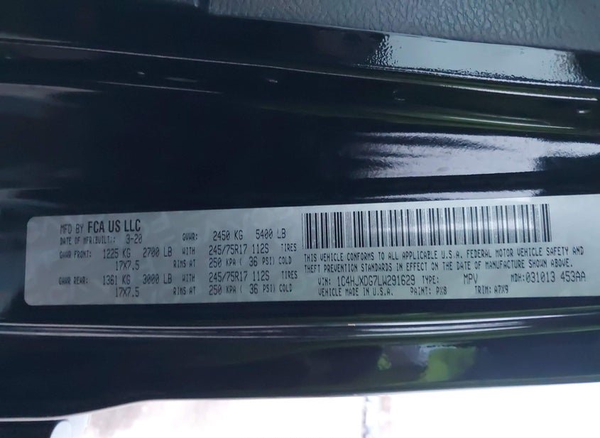 VIN: 1C4HJXDG7LW291629 · Aurora, IL, 60505 · IL Salvage