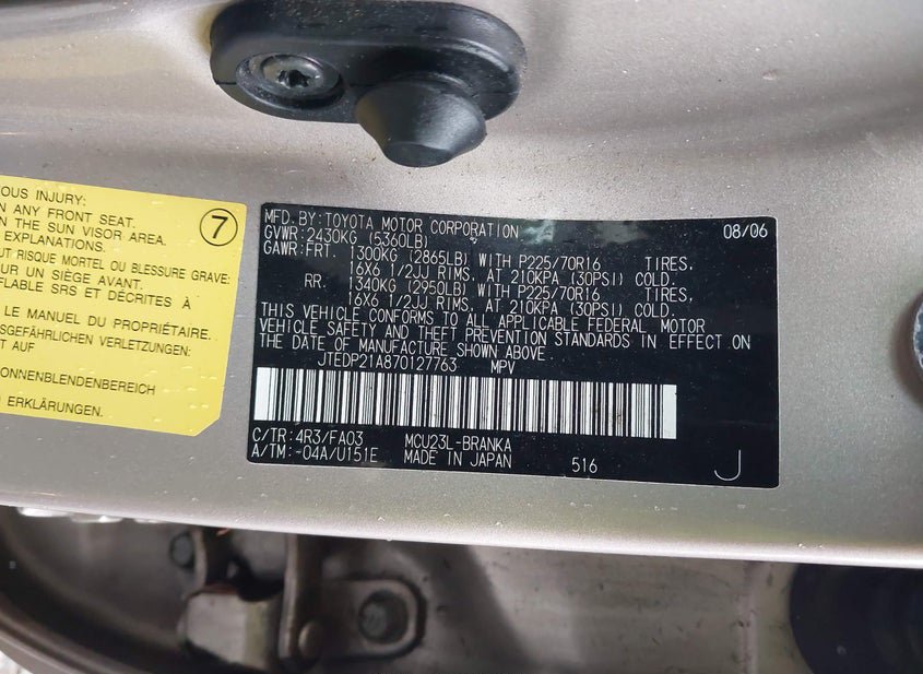 VIN: JTEDP21A870127763 · Puyallup, WA, 98374 · WA Bill Of Sale