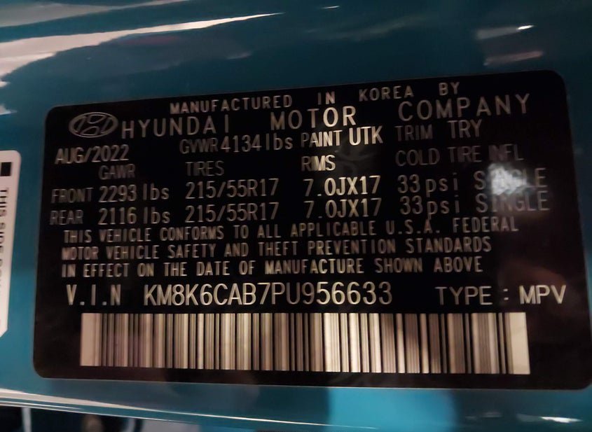 VIN: KM8K6CAB7PU956633 · Caseyville, IL, 62232 · MO Salvage