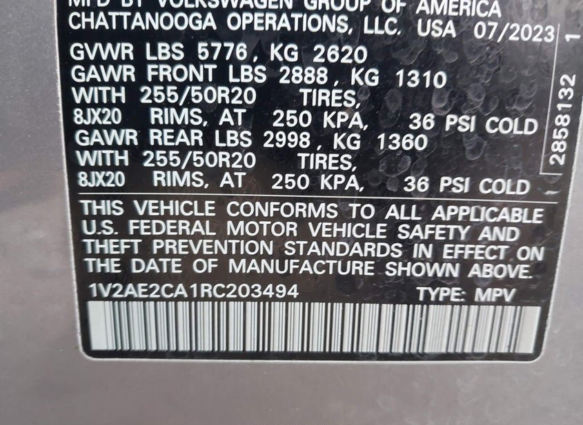 VIN: 1V2AE2CA1RC203494 · HOUSTON, TX, 77032 · TX ORIGINAL