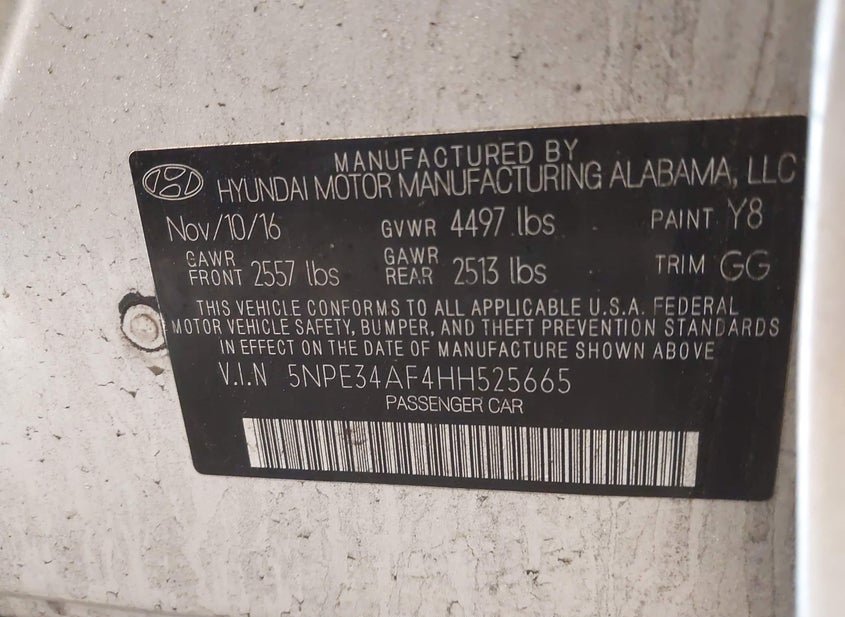 VIN: 5NPE34AF4HH525665 · Bergen, NY, 14416 · NY Mv-907A