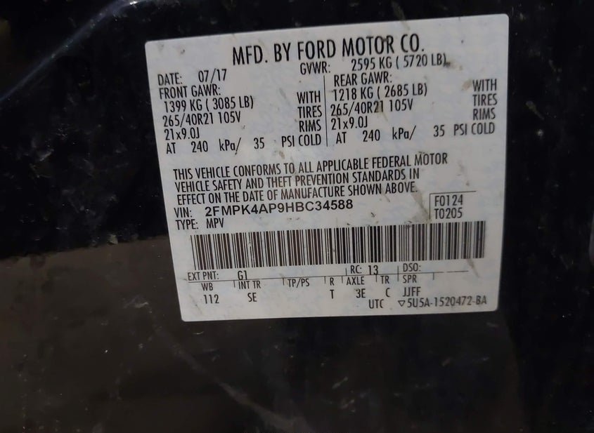VIN: 2FMPK4AP9HBC34588 · Garland, PA, 16416 · PA Salvage
