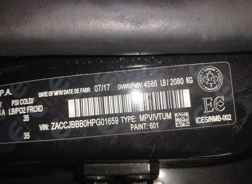 VIN: ZACCJBBB0HPG01659 · Belleville, MI, 48111 · MI Salvage