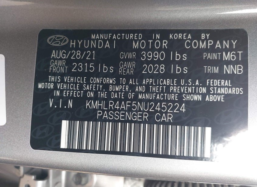 VIN: KMHLR4AF5NU245224 · BRANDYWINE, MD, 20613 · MD SALVAGE - GREATER THAN 75%