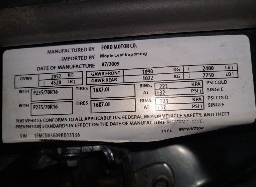 1FMCU03G09KD13136