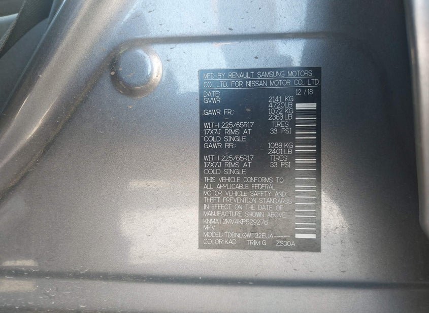 VIN: KNMAT2MV4KP529278 · Justin, TX, 76247 · TX Salvage