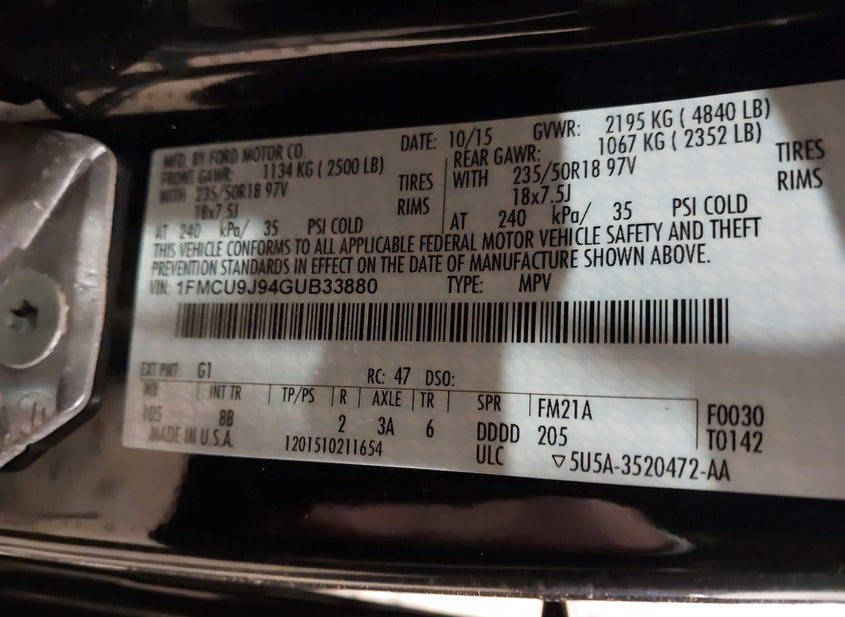 VIN: 1FMCU9J94GUB33880 · Lennox, SD, 57039 · SD Regular