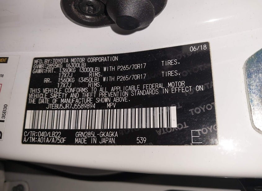 VIN: JTEBU5JR7J5589894 · Avenel, NJ, 07001 · NJ Salvage