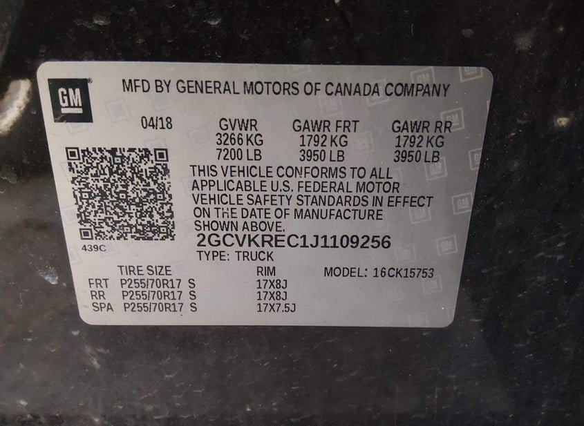 VIN: 2GCVKREC1J1109256 · West Chester, OH, 45069 · OH Original WITH WA DEALER REASSIGNMENT FORM