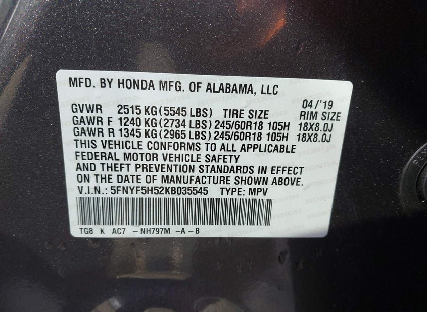 5FNYF5H52KB035545