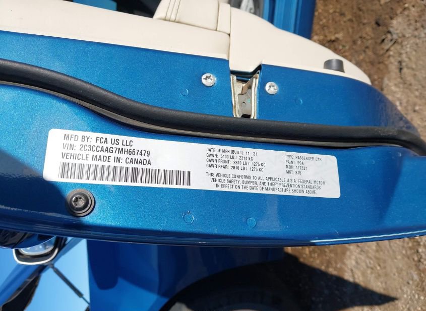 VIN: 2C3CCAAG7MH667479 · AMARILLO, TX, 79118 · TX ORIGINAL APPLIED WITH ODO OWNER ATTESTED TO.67878 NOT ACTUA