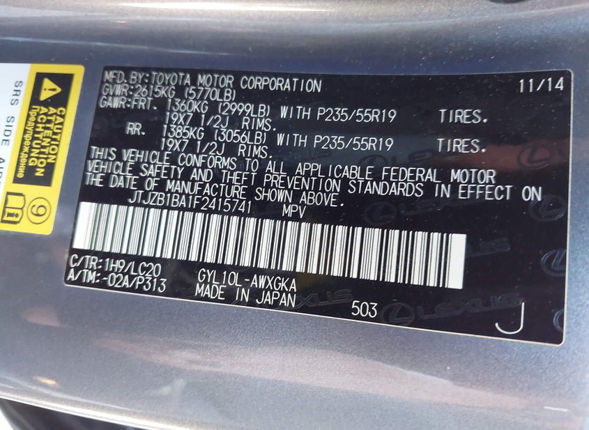 VIN: JTJZB1BA1F2415741 · KAPOLEI, HI, 96707 · HI CLEAR