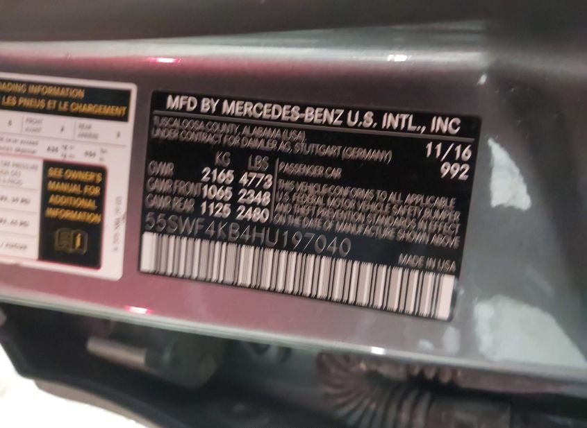VIN: 55SWF4KB4HU197040 · MARKHAM, IL, 60428 · IL SALVAGE