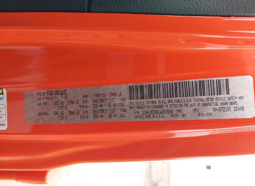 VIN: 1C4HJXDN8JW203683 · HOUSTON, TX, 77032 · TX ORIGINAL OWNER ATTESTED: 55000
