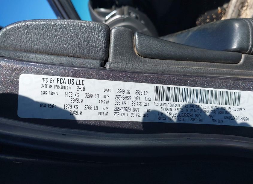VIN: 1C4RJEBGXJC339764 · LUBBOCK, TX, 79415 · TX ORIGINAL