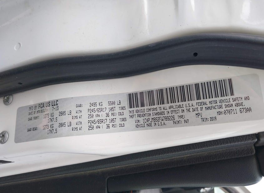 VIN: 1C4PJMBS2FW789226 · BELL COUNTY, TX, 76527 · TX SALVAGE