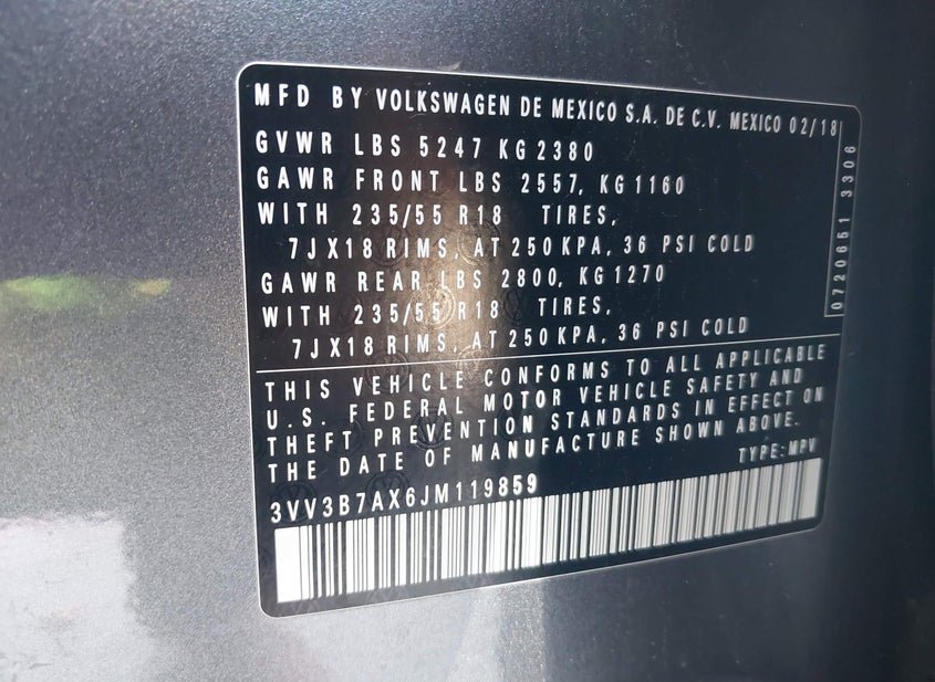 VIN: 3VV3B7AX6JM119859 · BELL COUNTY, TX, 76527 · TX ORIGINAL