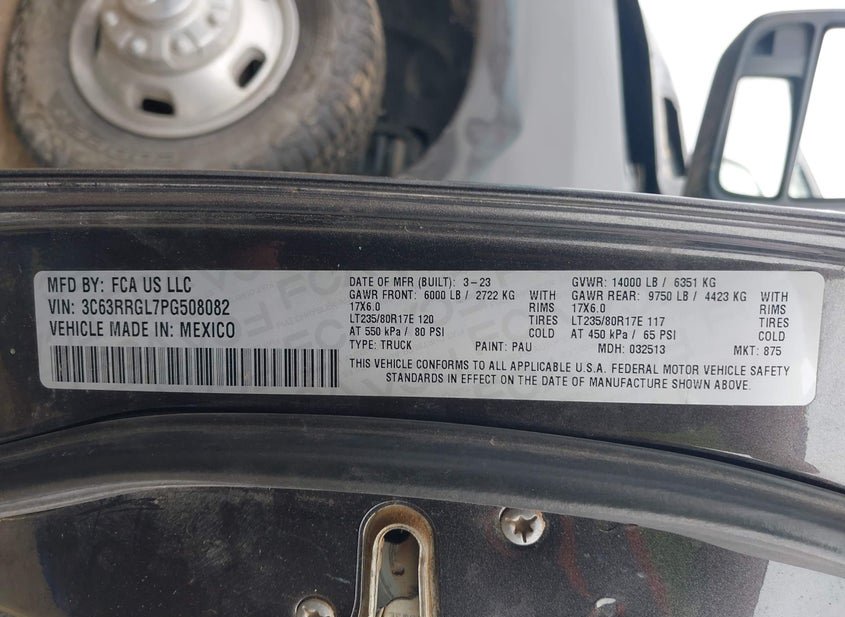 VIN: 3C63RRGL7PG508082 · Lubbock, TX, 79415 · TX Salvage