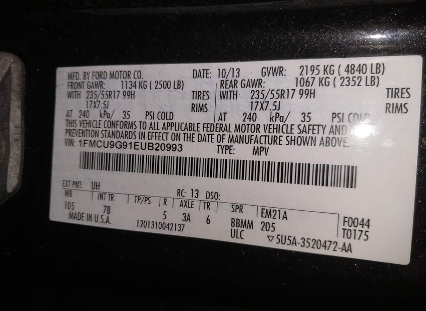 VIN: 1FMCU9G91EUB20993 · Bergen, NY, 14416 · NY Mv-907A