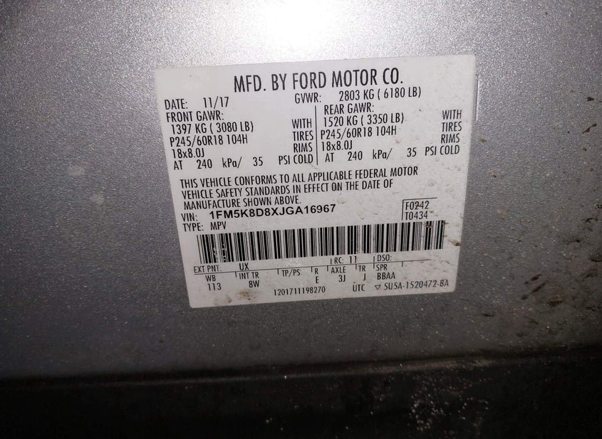 VIN: 1FM5K8D8XJGA16967 · GORHAM, ME, 04038 · ME SALVAGE