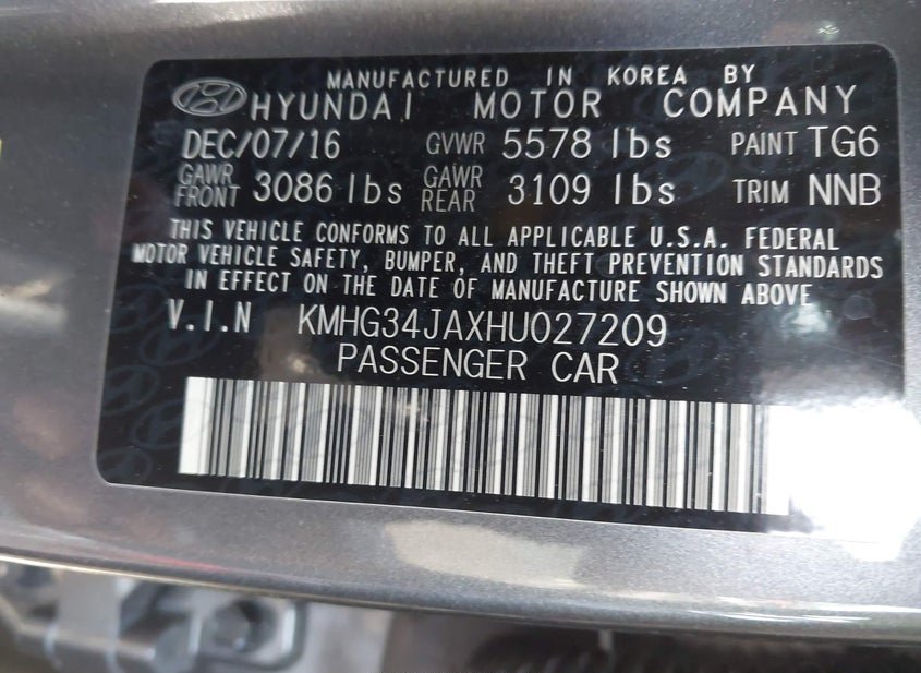 VIN: KMHG34JAXHU027209 · CHARLOTTE, NC, 28206 · NC SALVAGE