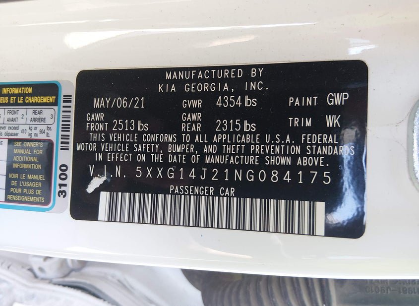VIN: 5XXG14J21NG084175 · Oklahoma City, OK, 73121 · OK Clear