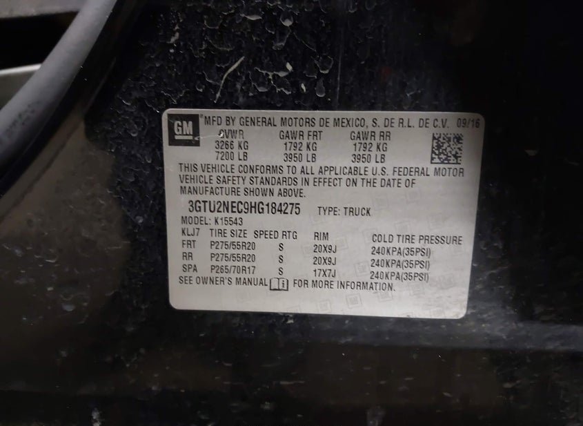 VIN: 3GTU2NEC9HG184275 · Fargo, ND, 58102 · ND Salvage